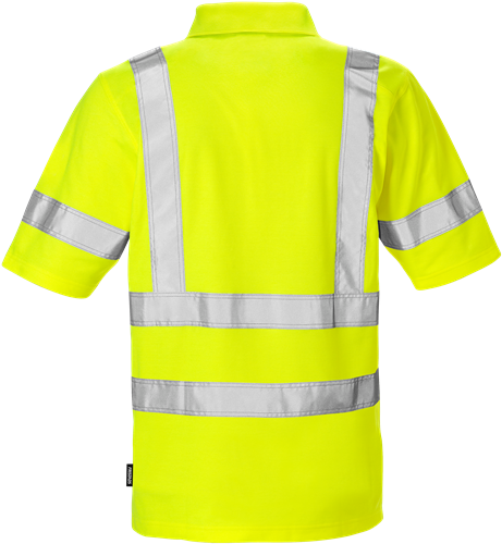 Pikétröja i varselfärger av mjukt och bekvämt stretchmaterial med bomull på insidan. Transporterar fukt, torkar snabbt och är godkänd för industritvätt.