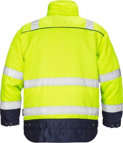 Polydex – smuts-, olje- och vattenavvisande / Pälsfiberfodrad, quiltfodrade ärmar / Ofodrad, instoppningsbar huva / Dragkedja ända upp i kragen under frontslå / 2 bröstfickor med lock, D-ring och ID-kortsficka / Kartficka med dragkedja och invändig telefonficka, som nås även när plagget är stängt / Hälla för hörsnäcka / 2 framfickor / 2 innerfickor / Reglerbar knäppning i midja och ärm / Innermudd i ärm / Förlängd rygg / Blixtlås i foder för brodyr alt. dekal / Godkänd enligt EN ISO 20471 klass 3 och EN 342 / Godkänd efter 25 tvättar / Testad för industritvätt enligt ISO 15797 / OEKO-TEX®-certifierad / Plagget går att förädla med en öppning i ryggen så att säkerhetssele kan användas.