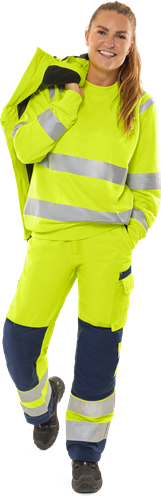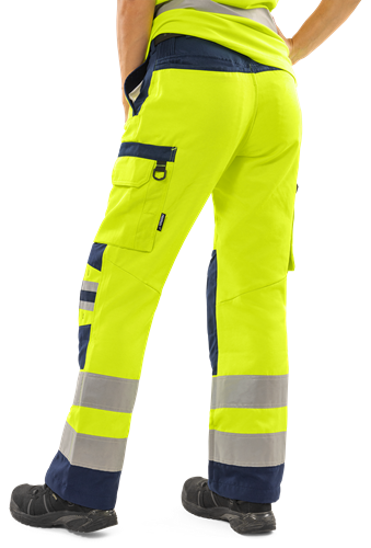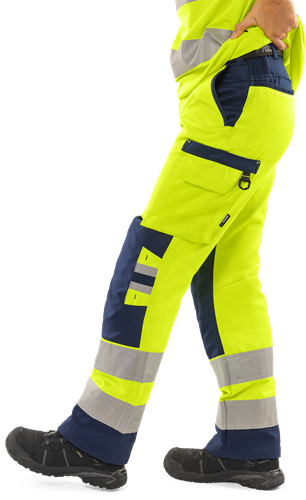 Återvunnen polyester och ekologisk bomull / Miljödeklarerad (EPD) / Ribbstickade stretchpartier i midjan / Dold knapp fram / 2 framfickor / 2 bakfickor / Dubbel förstärkt grensöm / Hammarhank / CORDURA®-förstärkt tumstocksficka med verktygsficka, pennficka samt knapp och hälla för kniv / Benficka med tryckknapp, ficka med lock och kardborrelås samt D-ring / Knäfickor i CORDURA® med öppning inifrån / Knäskydden i knäfickorna kan höjdjusteras / CORDURA®-förstärkning i benslut / Benlängden kan förlängas 5 cm eller förkortas 3 cm / Godkänd enligt EN ISO 20471 klass 2, EN 14404 tillsammans med knäskydd 124292 och EN 13758-2 UPF 40+ UV-skydd / Färg 271 och 286 godkända enligt RIS-3279-TOM för brittisk järnväg / Godkänd efter 50 tvättar / Testad för industritvätt enligt ISO 15797 / EPD reg.nr 3881 på environdec.com / OEKO-TEX®-certifierad.