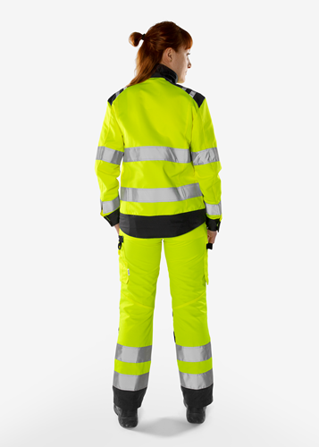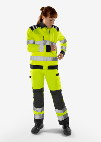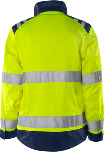 Återvunnen polyester och ekologisk bomull / Miljödeklarerad (EPD) / 2-vägs dragkedja ända upp i kragen under frontslå med tryckknappar / Bröstficka med dragkedja och invändig id-kortshållare / Bröstficka med vertikal dragkedja / 2 framfickor med dragkedja / Reglerbart ärmslut med tryckknapp / Reglerbar midja med knappar / Förlängd rygg / Godkänd enligt EN ISO 20471 klass 2 för S-M och klass 3 för L-5XL samt EN 13758-2 UPF 40+ UV-skydd / Färg 271 och 286 godkända enligt RIS-3279-TOM för brittisk järnväg / Godkänd efter 50 tvättar / Testad för industritvätt enligt ISO 15797 / EPD reg.nr 3878 på environdec.com / OEKO-TEX®-certifierad.